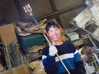 楽しそうに吹きガラス初チャレンジ!